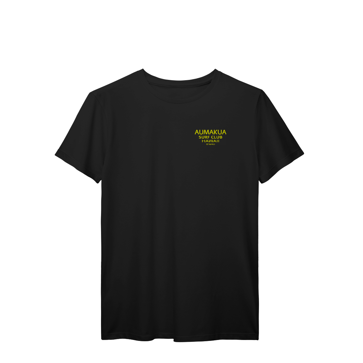 Camiseta Manga Curta Aumakua Premium Cor Preta e estampa amarelo, com toque aveludado, tecido leve que oferece maciez e conforto.
